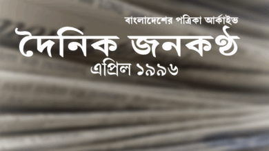 নিচের লিংকগুলোতে ক্লিক করে ‘দৈনিক জনকণ্ঠের’ এপ্রিল , ২০০১-এর সংখ্যাগুলো পাঠ করা যাবে। এপ্রিল , ২০০১: ০১ এপ্রিল ,…