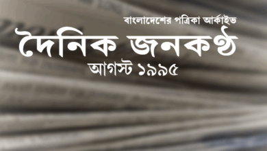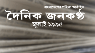 নিচের লিংকগুলোতে ক্লিক করে ‘দৈনিক জনকণ্ঠের’ জুলাই , ২০০১-এর সংখ্যাগুলো পাঠ করা যাবে। জুলাই , ২০০১: ০১ জুলাই ,…